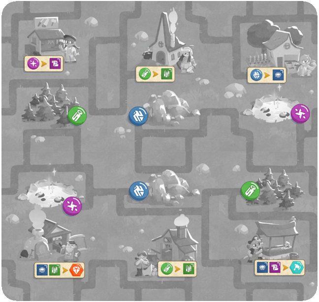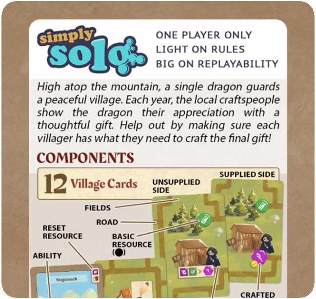 Build your map by adding new cards, connecting along road lines. Deliver goods along existing roads or use a special transport to enable unusual routes. As you fulfill villagers’ needs, they’ll offer higher-grade goods. Put together all three goods for the dragon’s gift to show your full appreciation!