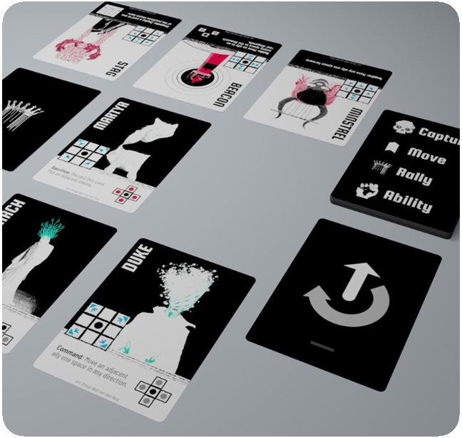 Each enemy performs the topmost action that it’s possible to take from their current position. Any time there’s a decision to make about which space or card to target, use the priority arrow on the back of the flipped card.