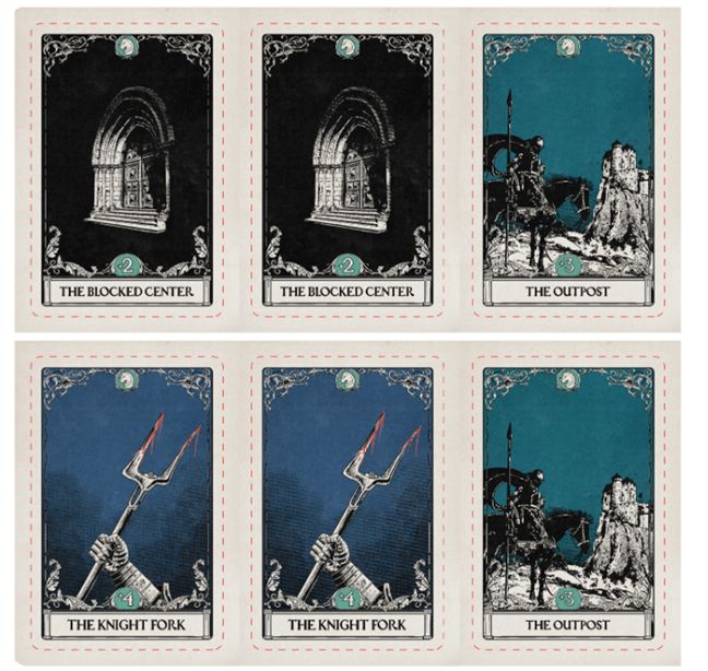 Imbalance Cards: Illustrated with medieval warfare motifs, these cards create shifting conditions that affect your played Piece Cards. Players can use Game Actions to align favorable Imbalance Cards with their played pieces.