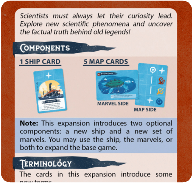 Add remarkable new marvels to discover and a new ship with unique journey effects in this 6-card expansion. Replace marvels from the base game with scientific discoveries from unhcarted frontiers, or add them in directly for an epic journey!