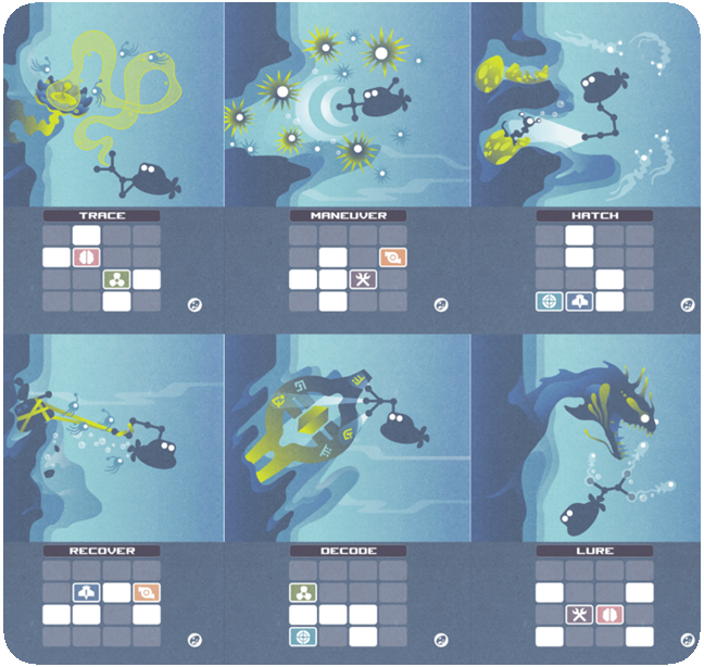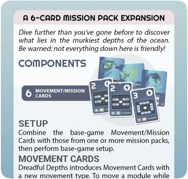 New movement cards allow specific modules to move to highlighted areas. Arrows extend the range of possible spaces even further.