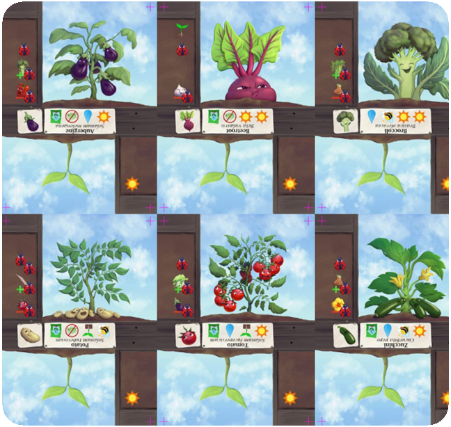 In order to achieve this, you will have to cleverly exploit the benefits of efficient companion planting as well as using crop rotation after your opponent’s season to your best advantage to grow your collection of plant shoots into a luscious and verdant garden of delicious vegetables.