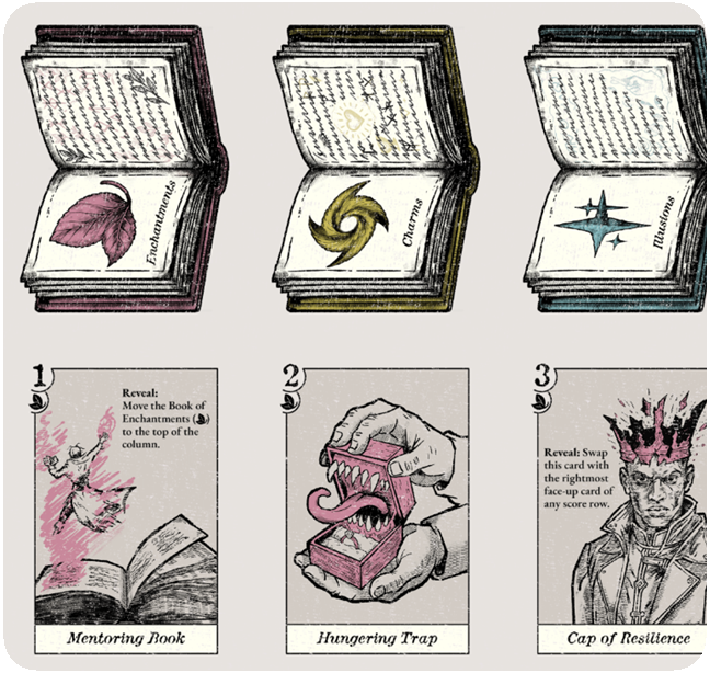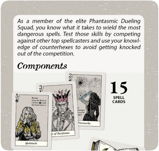 Prove your magical prowess in this strategic bluffing game. Play spells and counterspells against each other in rotating duels. Make use of each spellcasting style’s abilities to turn the tables on your opponents and trick them into making a mistake!