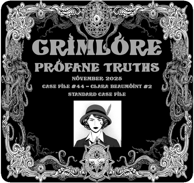 Enjoy this case file for GRIMLORE Profane Truths: a compact, puzzle-driven Lovecraftian scenario with tight lore and crunchy decisions.