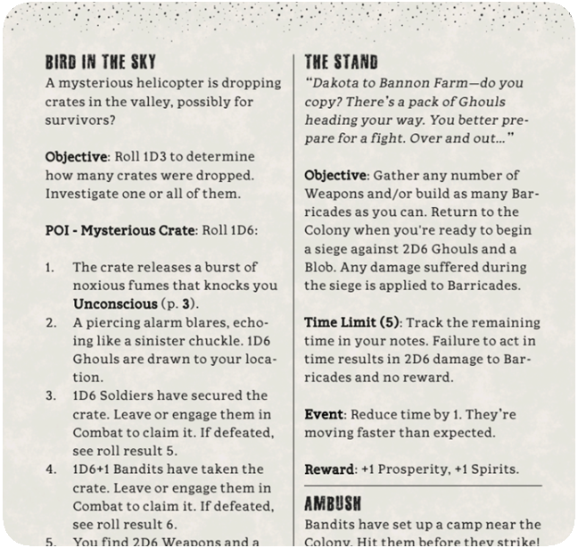 • Additional components needed: 2D6 (six-sided dice), writing tools, scratch paper (optional)