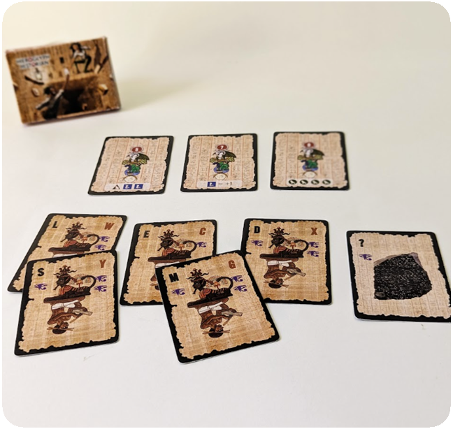 In this solo game, create words to both collect parchments and to decipher Ancient Egyptian hieroglyphs to escape the tomb!