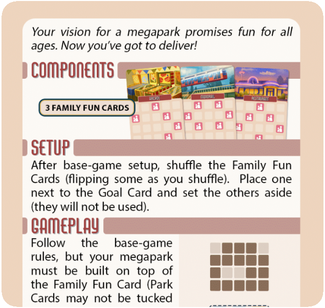 Family Fun 3-card expansion introduces family icons to incorporate into your megapark.